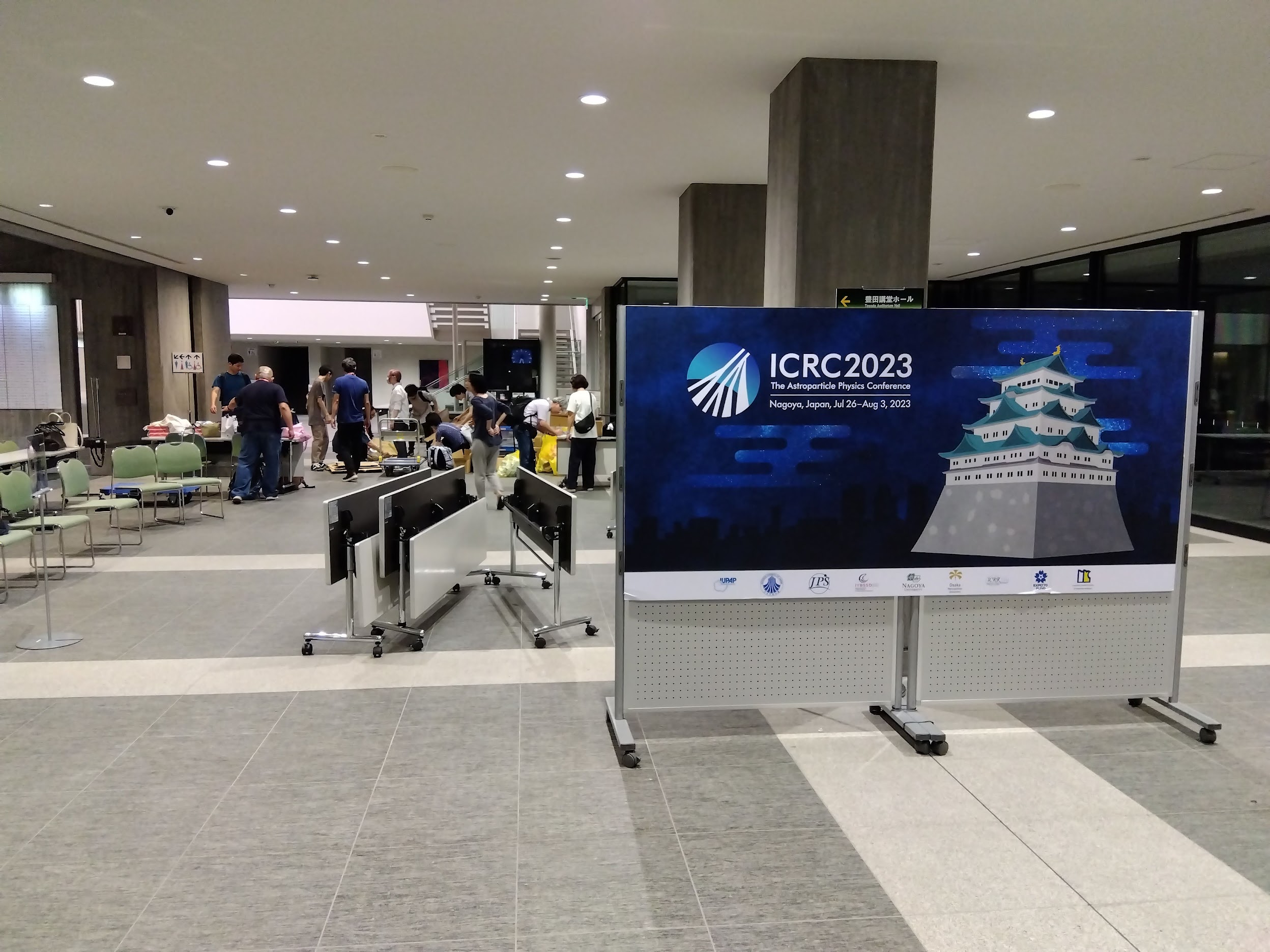 7月26日から8月3日まで、名古屋大学で第38回宇宙線国際会議が開催され、私も実行委員の一人として大忙しの今年度前半でした。2年に一度の会議なので、38回ということは76年も開催しているわけです。実際、第一回は1947年で戦後すぐにはじまった歴史ある会議です。日本では過去に京都(1961年)、京都(1979年)、つくば(2003年)で開催されており、今回は20年ぶり4回目の開催でした。もともとは大阪で開催予定でしたが、コロナ禍となり、「本当に人がこれるの?会場キャンセルになったらキャンセル料どうするの?」ということで、開催1年半前に、急遽大学キャンパスでの開催に変更になったのです。「できるだけ対面でやりたい、でも突然オンラインになるかも。みんなオンラインに慣れちゃってこないのでは?」と悩みながらのハイブリッドの準備。そんな中エネルギー危機でみなさん予算不足で日本までこれないかも、と…